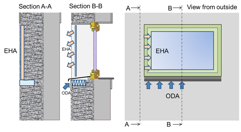 Especially in case of refurbishment, any changes and construction within the dwellings should be reduced to a minimum for two reasons: The living space should not be reduced too much by the ventilation system (heat recovery unit and air ducts) and the integration should be as minimal invasive as possible in order to avoid disruption to the residents. Another advantage of façade integration is the minimization of the ductwork for outdoor air (ODA) and exhaust air (EHA).
